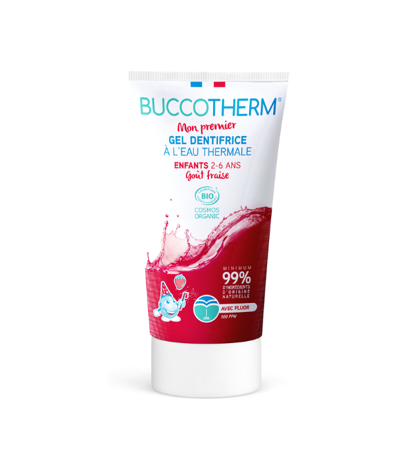 My first buccotherm 2-6 years old strawberry organic certified is a sweet toothpaste gel with a fluoride dosage especially adapted to children from 2 to 6 years old – 1000 ppm – and to their taste. Made with 98% of natural ingredients and with a natural strawberry flavour – without sugar – it will delight the little gourmets and the most recalcitrant to brushing!