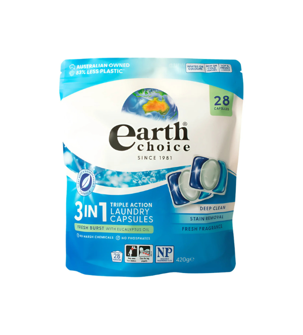 EARTH CHOICE 3 IN 1 EUCALYPTUS LAUNDRY CAPSULES.