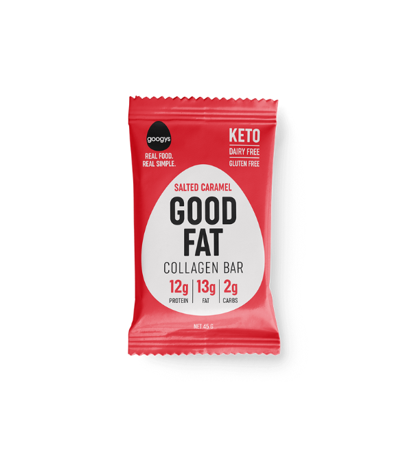 GOOGYS SALTED CARAMEL GOOD FAT COLLAGEN BAR.